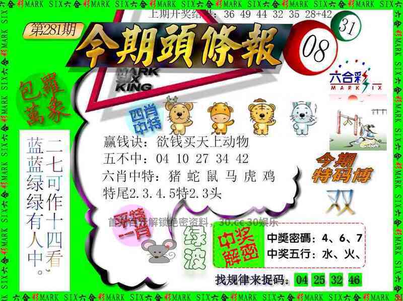 281期:稳赚七肖【蛇羊鼠马猴牛虎】开:羊47对 |